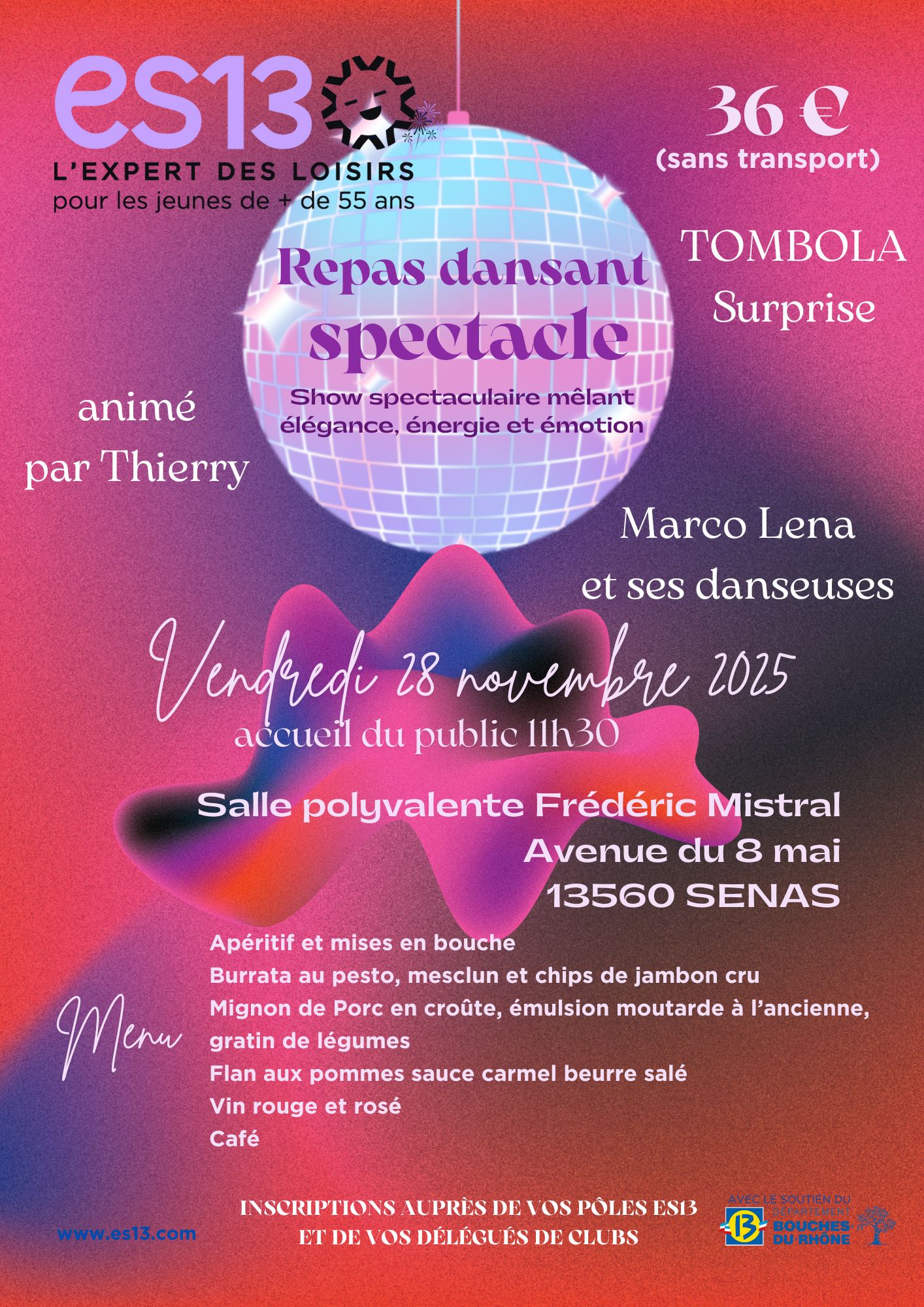 L’ES13 est une association qui propose aux jeunes de +55 ans des activités (cours de gym, cours de danse, de langues, initiation à l’œnologie ou à l’informatique par exemple), des sorties à la journée, des randonnées, des voyages et des croisières.